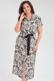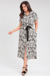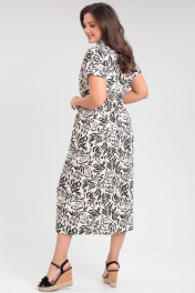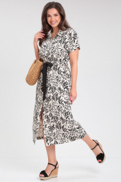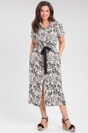 Платье летнее с длинным рукавом и карманами LeNata 16411 черно-молочный