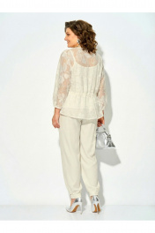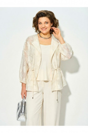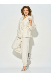Нарядный брючный костюм - эталон стиля и элегантности. Эффектный костюм включает в себя брюки «султанки», топ на регулируемых бретелях и свободную блузон- накидку из батиста с хлопковой вышивкой. Блузон свободного силуэта, с цельнокроеным рукавом длиной ¾-ти на резинке по низу. Модель с подбортом и регулируемой кулисой по талии. Топ скроен по-косой, слегка расклешен к низу, что обеспечивает 100% посадку по фигуре. Брюки в костюме с завышенной посадкой, на круговом поясе с резинкой. В боковых швах предусмотрены разрезы. Низ брюк оформлен манжет со сборкой на пуговицу. Брючная тройка не останется вас без внимания на торжественных мероприятиях, а свободный крой обеспечит идеальную посадку благодаря большому размерному ряду в соответствии с молодежным трендом! Длина блузона – 70 см, рукав- около 50 см. Брюки – 100-102 см. Топ – около 55 см.