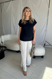 Базовая классическая повседневная блузка топ станет любимым предметом вашего гардероба - ее легко сочетать с брюками или юбкой. Модель свободная, полуприлегающего силуэта. Универсальная стильная модная блузка, в которой Вы будете чувствовать себя комфортно, как в офисе, так и на прогулке, также с помощью аксессуаров легко создадите праздничный нарядный вечерний образ. Благодаря своему составу, трикотажная ткань не мнется, что очень важно для опрятного вида. Модель с цельно кроенным объемным коротким рукавом отлично выглядит на женщине с пышной грудью, спинка топа цельнокройная.
