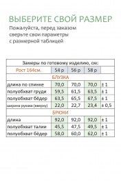 Ткань текстильая - брюки: полиэстер 100%; блузка: полиэстер 63%, хлопок 37%