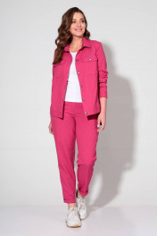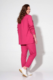 Комплект женский 2-х предметный: брюки и куртка. Размеры 50,52,54. Куртка свободного кроя. Рукав втачной двух-шовный, низ рукава на притачной манжете с застёжкой на петлю и пуговицу. Воротник рубашечного типа на отрезной стойке. По переду накладные функциональные карманы с клапаном. По спинке отрезная кокетка. Спинка куртки длиннее чем перед. Брюки зауженные к низу. Верхний край брюк на притачном поясе, по спинке от боковых швов на резинке. Застежка брюк спереди по типу «гульфик». На задних половинках брюк накладные карманы, спереди карманы «хулиганы». Длина брюк по боковому шву: 102 см. Длина куртки по центру переда: 56 см. Длина куртки по центру спинки: 73 см. Длина рукава: 63 см.