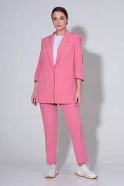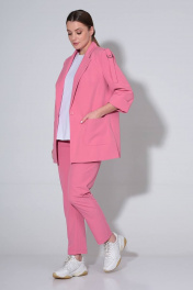 Демисезонный комплект из текстиля с прямым жакетом и брюками Liona Style 823 розовый
