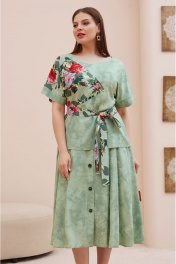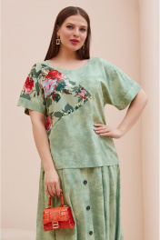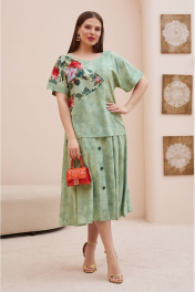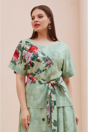 Летний костюм из вискозы: блуза с поясом и юбка с имитацией застежки Lissana 4746