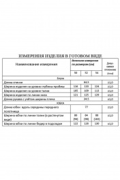Костюм юбочный Блуза с округлым вырезом горловины, цельнокроеными рукавами и съёмным поясом из ткани по талии. Изделие с притачными манжетами и вставкой из отделочной ткани по переду. Юбка на притачном поясе с резинкой. Переднее полотнище с имитацией застёжки по переду на пуговицы и складками от пояса. Заднее полотнище с потайной молнией в среднем шве и складками от пояса. Юбка на подкладке.