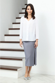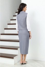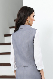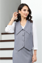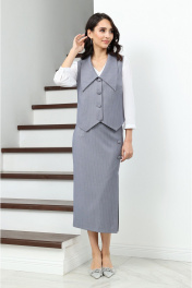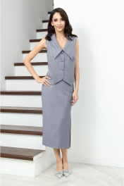 Костюм юбочный. Жилет со стояче-отложным воротником, фигурным низом и центральной застёжкой на петли и пуговицы. Спинка с талиевыми вытачками. Жилет на подкладке. Юбка на поясе с резинкой. Переднее полотнище с разрезом и декоративными пуговицами. Заднее полотнище с потайной молнией в среднем шве. Юбка на подкладке. ВОЗМОЖНА ЗАМЕНА ФУРНИТУРЫ НА АНАЛОГИЧНУЮ ТАКОГО ЖЕ КАЧЕСТВА.