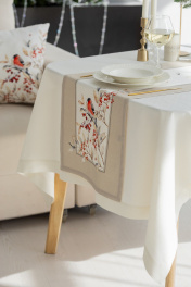 Все скатерти и дорожки коллекции «ПЕРНАТЫЕ ИСТОРИИ» выполнены из ткани для столового белья плотностью 180г/кв.м и имеют специальную пропитку (влаго-, масло- и грязеотталкивающую обработку). Принт на ткани нанесен методом цифровой печати с использованием высококачественных красителей, благодаря чему изделия не линяют и не меняют свой цвет после многократных стирок. Рисунок по ткани виден только на лицевой стороне. ЭКСКЛЮЗИВНЫЙ ДИЗАЙН: Коллекция «Пернатые истории» — это зимняя сказка, сотканная из тепла, уюта и волшебства. В её центре — трогательные образы птиц, уютно устроившихся на заснеженных ветвях с яркими ягодами, словно наблюдающих за тем, как дом наполняется ожиданием праздника. «Пернатые истории» — это не просто декор. Это приглашение замедлиться, зажечь свечи, налить горячий чай и встретить Новый год в окружении красоты, вдохновлённой природой.