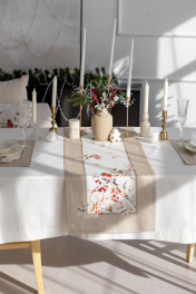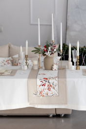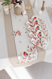 Все скатерти и дорожки коллекции «ПЕРНАТЫЕ ИСТОРИИ» выполнены из ткани для столового белья плотностью 190г/кв.м и имеют специальную пропитку (влаго-, масло- и грязеотталкивающую обработку). Принт на ткани нанесен методом цифровой печати с использованием высококачественных красителей, благодаря чему изделия не линяют и не меняют свой цвет после многократных стирок. Рисунок по ткани виден только на лицевой стороне. ЭКСКЛЮЗИВНЫЙ ДИЗАЙН: Коллекция «Пернатые истории» — это зимняя сказка, сотканная из тепла, уюта и волшебства. В её центре — трогательные образы птиц, уютно устроившихся на заснеженных ветвях с яркими ягодами, словно наблюдающих за тем, как дом наполняется ожиданием праздника. «Пернатые истории» — это не просто декор. Это приглашение замедлиться, зажечь свечи, налить горячий чай и встретить Новый год в окружении красоты, вдохновлённой природой.
