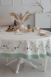 Овальная скатерть из хлопка с васильковым рисунком и защитной пропиткой Listelle 514002