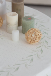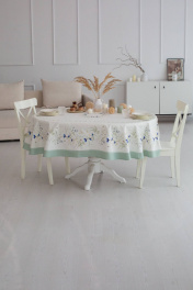 Все скатерти коллекции «ВАСИЛЬКИ» имеют специальную пропитку (влаго-, масло- и грязеотталкивающую обработку). Принт на ткани нанесен методом цифровой печати с использованием высококачественных красителей, благодаря чему изделия не линяют и не меняют свой цвет после многократных стирок. Рисунок по ткани виден только на лицевой стороне. Скатерть коллекции «ВАСИЛЬКИ» размером 140х170см овальная. Край скатерти обметан и подложен. Скатерть 140х170см овальная подходит для овального стола шириной 70…80…90…100см и длиной 100...110...120...130см. Скатерть с принтом в виде васильков, мятной каймой и венком в центре скатерти. Упаковка товара: Полипропиленовый пакет