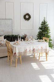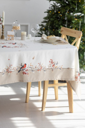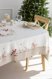 Все скатерти и дорожки коллекции «ПЕРНАТЫЕ ИСТОИИИ» выполнены из ткани для столового белья плотностью 180 г/кв.м и имеют специальную пропитку (влаго-, масло- и грязеотталкивающую обработку). Принт на ткани нанесен методом цифровой печати с использованием высококачественных красителей, благодаря чему изделия не линяют и не меняют свой цвет после многократных стирок. Рисунок по ткани виден только на лицевой стороне. ЭКСКЛЮЗИВНЫЙ ДИЗАЙН: Коллекция «Пернатые истории» — это зимняя сказка, сотканная из тепла, уюта и волшебства. В её центре — трогательные образы птиц, уютно устроившихся на заснеженных ветвях с яркими ягодами, словно наблюдающих за тем, как дом наполняется ожиданием праздника. «Пернатые истории» — это не просто декор. Это приглашение замедлиться, зажечь свечи, налить горячий чай и встретить Новый год в окружении красоты, вдохновлённой природой.
