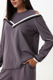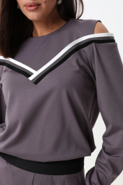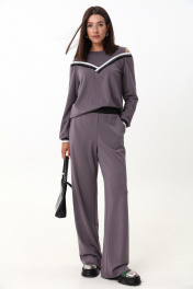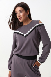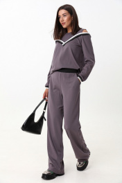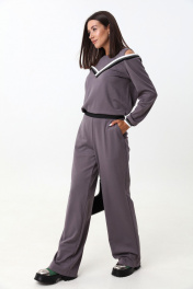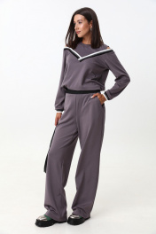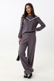 Комплект из трикотажного джемпера и брюк с экокожей LM К1347 серый
