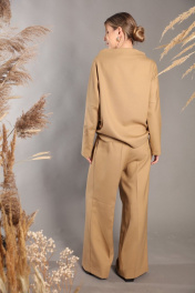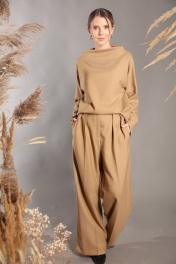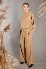 Повседневный комплект в минималистичном стиле из мягкой ткани с шерстью в составе, состоящий из свободного джемпера и широких брюк. Удобный повседневный джемпер свободного объема, прямого силуэта. Брюки большого объема. На передних и задних половинках брюк заутюжен кант, заложены складки по линии талии. В боковых швах расположены карманы. Застежка-гульфик. Пояс отрезной, притачной.). Пояс со шлевками. Выступающая часть пояса застегивается на петлю и крючок. Фурнитура и материалы отделки могут незначительно отличаться от тех, что на фотографии. Рост фотомодели 166 см. Размер у фотомодели – 42.