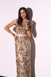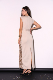 Бежевое платье из кружева с пайетками и разрезом по спинке LM М46-3