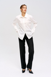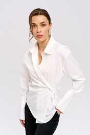 Рубашка полуприлегающего силуэта, c широким манжетом и возможностью сделать драпировку с помощью пуговиц сбоку. Очень универсальная модель, легко подстраивается под любую цель и стиль. Модель выполнена из тактильно приятной ткани (хлопок с примесью полиэстера), что делает ее мягкой, гладкой и менее мнущейся. - Полуприлегающий крой - Широкий манжет рукава (можно подворачивать) - Застегивается на скрытую планку с пуговицами - Воротник рубашечный на стойке - Пуговицы сбоку позволяют сделать драпировку - Декоративная планка по спинке Длина рубашки по спинке 70 см, ширина 66 см, длина рукава 60 см. На модели рубашка размера 44 Параметры модели: 89х64х95 см Рост модели 176 см