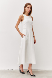 Платье с юбкой А-силуэта и перекрестными карманами Luitui R1092 молочный