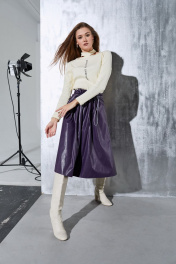 Юбка из эко-кожи с кулисой, свободного кроя, 75 см Luna 013 фиолетовый
