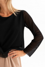 Стильный двойной лонгслив из висозы прямого силуэта с длинным рукавом станет универсальным дополнением в гардеробе девушек и женщин,предпочитающих комфорт и элегантность.Сетчатый материал и крой делает его универсальным ,женственным, подходящим для создания повседневных образов,офисных будней или вечерних прогуллок.Праздничный образ можно дополнить стильной бижутерией. длина-61см, длина рукава-62см