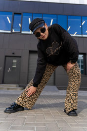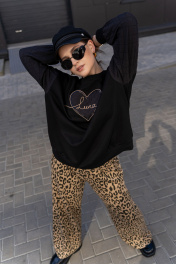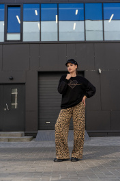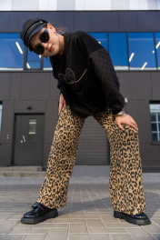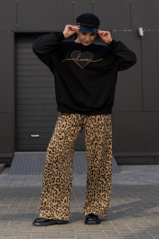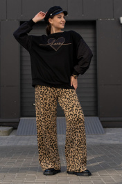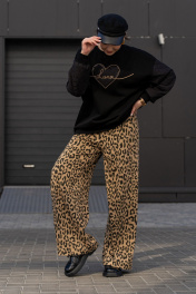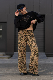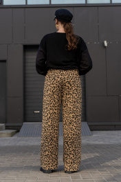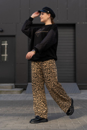 Широкие брюки из трикотажного полотна с высокой посадкой Luna 192 леопард