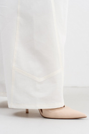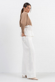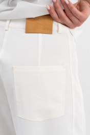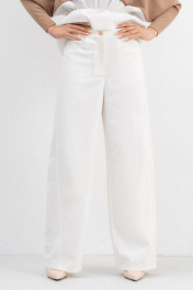 Брюки(джинсы) современного кроя из хлопка,высокой посадки на поясе с застёжкой на тесьму-молнию и джинсовую пуговицу.Накладные карманы сзади для удобства.