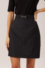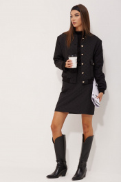 Комплект состоящий из жакета и юбки. Жакет укороченный прямого силуэта из костюмной ткани. Горловина с фигурной стойкой, по центру застежка на петли и пуговицы. Рукав втачной, с удлиненной линией плеча. По низу рукава притачная манжета. По переду накладные карманы с клапанами и пуговицами. По низу жакета притачной пояс. Жакет на подкладке. Обращаем ваше внимание, что фурнитура может незначительно отличаться от фото. Юбка А- силуэта из костюмной ткани. По верху юбки притачной пояс с декоративной протяжкой. В среднем шве спинки потайная молния. Юбка на подкладке. Обращаем ваше внимание, что фурнитура может незначительно отличаться от фото. Длина жакета: (44-48р - 52см)(50-54р - 54см)(56-60р - 55см) Длина рукава: 61см Длина юбки: (44-48р – 45см)(50-54р - 47см +пояс 4,5см) .