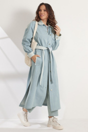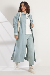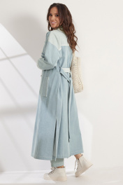Стильных и универсальный предмет гардероба - джинсовый плащ (тренч) свободного кроя, без подкладки, с центральной застежкой на металлические пуговицы. Выполнен из качественного джинсового полотна. Плащ дополнен съемным поясом, выполненным из основной ткани, а так же удобными боковыми карманами. Рукав спущен. Длина плаща от плечевого шва 125 см Длина рукава 61 см