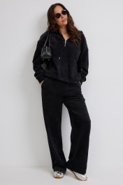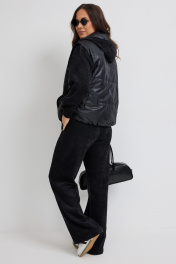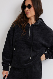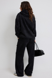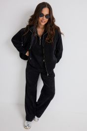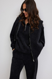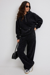 Стильный и уютный комплект из утепленного жилета, худи и брюк, выполненных из фактурного трикотажного полотна (штрукс). Жилет свободного прямого кроя с центральной застежкой на металлическую молнию. Горловина обработана стойкой. Перед жилета выполнен из трикотажного полотна, спинка выполнена из плащевой ткани. Жилет дополнен удобными боковыми карманами. Худи свободного прямого кроя со слегка спущенным рукавом. Дополнено уютным капюшоном и застежкой на металлическую молнию. Для придания формы по низу расположена кулиска на резинке с фиксаторами. Так же худи дополнено удобными карманами. Брюки прямого свободного кроя, с притачным поясом, дополненным эластичной тесьмой. Посадка средняя. По бокам брюки дополнены удобными карманами. Длина жилета от плечевого шва 64 см. Длина худи от плечевого шва 60 см. Длина рукава 61 см. Длина брюк по боковому шву 106 см.