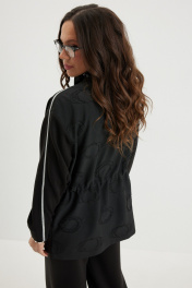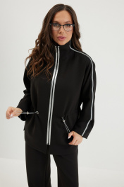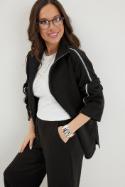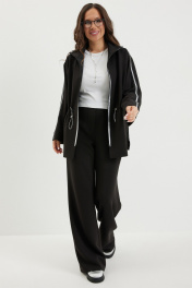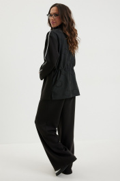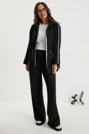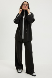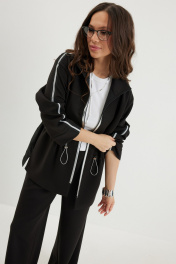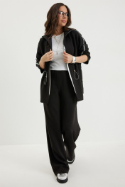 Стильный комплект из парки и брюк, выполненных из мягкого трикотажного полотна в комбинации с жаккардом. Парка свободного кроя, без подкладки. Выпполнена из трикотажа, спинка выполнена из красивого фактурного жаккарда. Парка дополнена красивой серебристой центральной молнией и скрытой кулиской по талии с красивыми серебристыми фиксаторами. За счет них можно приталить , либо сделать свободным силуэт изделия. Рукава слегка спущены и дополнены красивой серебристой тесьмой. Горловина-стойка визуально вытягивает силуэт. Брюки прямого кроя на резинке. Посадка средняя. Дополнены удобными карманами. Длина спинки 70см. Длина рукава 58см. Длина брюк по боковому шву 104 см.