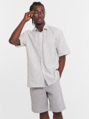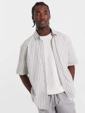Мужская рубашка с короткими рукавами станет отличным дополнением вашего гардероба. Модель прямого кроя обеспечивает классический и элегантный вид, идеально подходящий для различных повседневных образов. Изделие выполнено из льна и хлопка, что обеспечивает комфорт и воздухопроницаемость - идеально для тёплого времени года. Короткие рукава и застежка на пуговицы добавляют практичность и удобство, а отложной воротник придаёт стильный и аккуратный вид. Спинка с кокеткой обеспечивает удобную посадку, а низ изделия и рукавов, обработанный швом вподгибку, гарантирует долговечность и аккуратный вид. Эта рубашка станет отличным выбором для создания стильных и удобных образов!