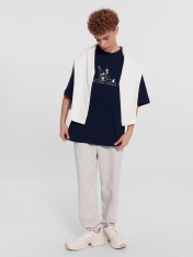 Мужская футболка свободного кроя с круглой горловиной и спущенной линией плеча обеспечит максимальный комфорт в повседневной носке. Изделие выполнено из нежной кулирки, которая представляет собой мягкий и дышащий хлопковый материал. Такая ткань отлично пропускает воздух и позволяет коже дышать, что особенно важно в жаркую погоду. Кулирка также известна своей прочностью и способностью сохранять форму даже после многочисленных стирок, что делает футболку долговечным элементом вашего гардероба._x000D_