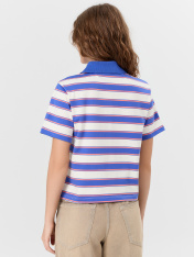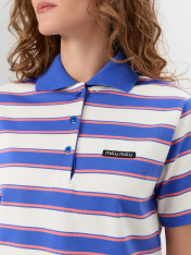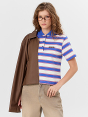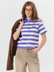Женское поло в полоску — это классика с современным силуэтом. Прямой свободный крой и слегка спущенная линия плеча обеспечивают удобство и свободу движений. Короткие рукава идеально подходят для теплой погоды. <br>_x000D_ <br>_x000D_ Передняя планка с тремя пуговицами выполнена как одно целое из основной ткани, поэтому она не деформируется, выглядит аккуратно и держит форму. Особое внимание уделено комфорту: воротник и внутренние швы обработаны мягкой тесьмой, а низ изделия и рукавов аккуратно подогнуты. Эта поло станет универсальным элементом гардероба.