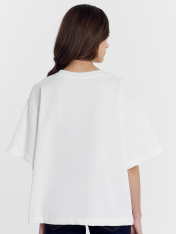 Футболка свободного кроя — отличный вариант для повседневной носки. Модель выполнена из натурального хлопка, который приятен к телу, позволяет коже дышать и не теряет формы после стирки. Свободный крой со спущенными плечами и круглой горловиной подходит для любого типа фигуры._x000D_ Удобная длина и продуманный крой позволяют носить футболку как навыпуск, так и заправленной в пояс, создавая разные варианты образов.<br>_x000D_ <br>_x000D_ Футболку легко сочетать с джинсами, шортами, юбками или спортивными брюками. Эта модель станет удобным и стильным решением для прогулок, встреч с друзьями или отдыха на природе._x000D_ _x000D_