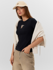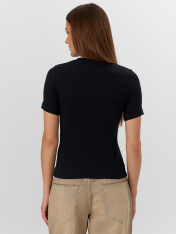 Женская футболка прилегающего силуэта — это классика базового гардероба, которая идеально подчеркивает фигуру и обеспечивает комфорт в повседневной носке. Круглая горловина придаёт изделию лаконичный и универсальный вид, а короткие рукава делают модель подходящей для теплых дней и многослойных образов. Нижние срезы футболки и рукавов обработаны швом вподгибку, что добавляет аккуратности и долговечности изделию. Материал, из которого выполнена модель, — хлопок с небольшим содержанием эластичных волокон, обеспечивает мягкость, воздухопроницаемость и свободу движений. Такая футболка легко сочетается с джинсами, юбками и шортами, что делает её идеальным выбором для повседневного или спортивного стиля. Простой и практичный элемент гардероба, который выделяется качеством и удобством! Рекомендуем._x000D_ _x000D_ _x000D_