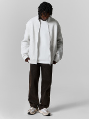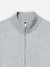 Мужская толстовка прямого силуэта из трикотажного футера с подчесом — практичный и универсальный выбор для прохладных дней. Материал обладает мягкостью и умеренной плотностью, отлично удерживает тепло и приятно ощущается на теле. Округлая горловина с воротником из рибаны аккуратно оформлена и надежно фиксируется, сохраняя форму при носке. Спущенная линия плеча и длинные рукава с рибаной на манжетах обеспечивают комфорт и расслабленный силуэт, подходящий для любого типа фигуры. Центральная застежка на тесьму-молнию позволяет легко надевать и снимать изделие, а также добавляет практичности и динамичного настроения. Пояс из рибаны по низу завершает образ и фиксирует посадку, не давая ткани растягиваться. Толстовка легко комбинируется с джинсами, спортивными брюками или шортами, отлично подходит для города, загородных поездок или активного отдыха.