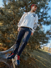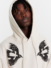 Мужское худи из трикотажного футера без подчеса с принтом в виде птиц. В составе изделия - натуральный хлопок. Силуэт свободный, оверсайз. Вырез круглый, классический, с уютным капюшоном. Рукава свободные, с манжетами. Накладной карман-кенгуру и эластичный пояс из рибаны делают его еще более уютным. Худи с капюшоном — это лучший выбор мужской одежды на любое время года. Широкий размерный ряд. Дополнить можно стильным низом из коллекции одежды для мужчин. Рекомендуем для создания оригинальных городских аутфитов!