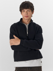 Толстовка мужская изготовлена из трикотажного полотна футер 3-х нитка (без подчёса). _x000D_ Толстовка свободная, прямая._x000D_ Горловина округлой формы с воротником стойкой из основного полотна. _x000D_ Рукава втачные длинные. Линия плеча слегка спущена. По окату рукава и плечевым швам отделочные строчки. По низу рукава отрезная манжета из рибаны. Центральная застежка на тесьму-молнию. По низу изделия отрезной пояс из рибаны. По шву втачивая пояса - отделочные строчки.