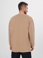 Оверсайз лонгслив создает современный и расслабленный образ. Его свободный крой со слегка спущенным плечом обеспечивает комфорт и полную свободу движений._x000D_ Лонгслив выполнен из кулирной глади — легкого и дышащего трикотажа на основе хлопка. Круглая горловина и длинные рукава обработаны эластичной рибаной, которая помогает сохранять форму. Отличительной деталью являются наружные швы по линии плеча, добавляющие модели индустриальный акцент и фактурность. Спереди слева расположен накладной карман с такими же контрастными швами, подчеркивающими стиль. <br>_x000D_ <br>_x000D_ Материал из натурального хлопка обеспечивает приятные тактильные ощущения, отличную воздухопроницаемость и комфорт в течение всего дня. _x000D_ <br> Этот лонгслив станет универсальной основой для создания многослойных образов, легко сочетаясь с джинсами, брюками или шортами в стиле кэжуал._x000D_