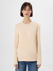 Этот лонгслив станет базовым элементом в гардеробе каждой современной женщины. Прямой силуэт и круглая горловина придают модели классический и стильный вид. А длинные рукава и спущенная линия плеча добавляют дополнительное удобство и расслабленность. Изготовленный из хлопковой кулирки, лонгслив гарантирует мягкость и приятные ощущения при носке. Идеальный выбор для создания различных образов на каждый день.