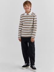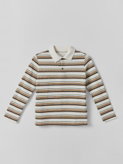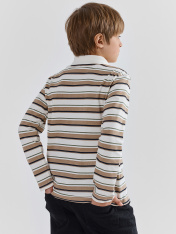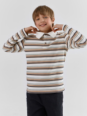 Поло для мальчиков прямого силуэта. Рукава втачные длинные. Плечо слегка спущено. Горловина округлый формы с рубашечным воротником из довяза DOV-16, DVC-85/001-0/5 . Шов обработки горловины - закрыт х/б тесьмой 10 мм 10TGY-O. По переду обработана застежка на петли и пуговицы d=10 mm. _x000D_ _x000D_