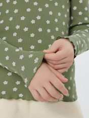 Джемпер для девочек с нежным цветочным принтом — элегантный вариант для школы и праздников. Прилегающий силуэт облегает фигуру, сохраняя свободу движений. Удобный круглый вырез и длинные рукава с фактурной резинкой добавляют модели аккуратный вид.<br>_x000D_ Джемпер выполнен из высококачественного хлопка с добавлением эластана — это обеспечивает комфорт в течение всего дня. Натуральный состав позволяет коже дышать, а небольшая добавка эластана гарантирует идеальную посадку и сохранение формы. Нежный цветочный принт и универсальный бежевый оттенок делают джемпер стильным элементом гардероба.<br>_x000D_ <br>_x000D_ Эта модель станет надежным спутником для уроков, праздничных мероприятий или визитов в гости — в ней юная модница будет чувствовать себя уютно и уверенно. Джемпер легко сочетается с брюками, юбками и сарафанами, позволяя создавать разнообразные образы._x000D_