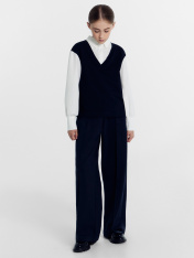 Школьный джемпер-обманка для девочки представляет собой модель свободного силуэта, которая сочетает в себе имитацию жилетки и рубашки. Этот дизайн придает джемперу особый шарм и делает его стильным и оригинальным. Жилет изготовлен из качественного селаника и имеет V-образную горловину. Рубашка, в свою очередь, выполнена из прочной ткани и имеет круглую форму горловины, а воротник украшен стойкой. По переду рубашки расположена центральная застежка на пуговицы, благодаря чему джемпер легко надевается и снимается. Спущенное плечо и углубленная пройма дарят свободу движений. Втачные рукава - длинные, выполнены из той же ткани, что и рубашка. Низ рукава немного расширен и присборен, а по низу - отрезная манжета из ткани, которая создает аккуратный вид. Отличный выбор для создания школьного образа, который сочетает в себе комфорт и стиль. Рекомендуем!