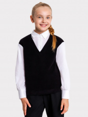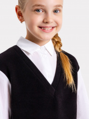 Школьный джемпер-обманка для девочки представляет собой модель свободного силуэта, которая сочетает в себе имитацию жилетки и рубашки. Этот дизайн придает джемперу особый шарм и делает его стильным и оригинальным. Жилет изготовлен из качественного селаника и имеет V-образную горловину. Рубашка, в свою очередь, выполнена из прочной ткани и имеет круглую форму горловины, а воротник украшен стойкой. По переду рубашки расположена центральная застежка на пуговицы, благодаря чему джемпер легко надевается и снимается. Спущенное плечо и углубленная пройма дарят свободу движений. Втачные рукава - длинные, выполнены из той же ткани, что и рубашка. Низ рукава немного расширен и присборен, а по низу - отрезная манжета из ткани, которая создает аккуратный вид. Отличный выбор для создания школьного образа, который сочетает в себе комфорт и стиль. Рекомендуем!