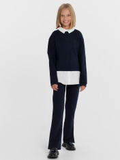 Школьный джемпер для девочек свободного силуэта из академика с имитацией рубашки. Выполнен из качественного материала академик, который обеспечивает комфорт и долговечность изделия. Горловина джемпера круглая и оформлена воротником-стойкой. Застежка-капелька на пуговице на спинке позволяет легко надевать и снимать его. Плечо спущено, пройма углублена и обеспечивает свободу движений и комфорт при носке. Рукава - длинные с манжетами. По низу изделия находится декоративная вставка из текстиля, которая имитирует рубашку. Этот элемент придает джемперу школьный и аккуратный вид. Вставка оформлена пуговицами. Подходит для повседневной носки и легко сочетается с другими элементами школьной формы или обычной одежды. Рекомендуем!
