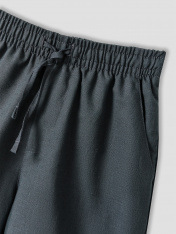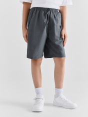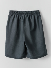 Шорты прямого силуэта. Посадка средняя. Пояс цельнокроеный с эластичной тесьмой внутри. Шов сидения шорт распошит. На поясе пробиты петли, заправлен шнур из основного полотна. По переду имитация гульфика, обработаны карманы с наклонным входом от боковых швов. Низ шорт_x000D_ обработан швом в подгибку._x000D_