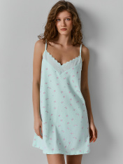 Домашняя женская сорочка длиной выше колена — это изысканная и удобная модель, созданная для того, чтобы вы чувствовали себя комфортно и красиво в любой момент. Прямой силуэт обеспечивает свободу движений, а тонкие бретели добавляют легкости и женственности, делая сорочку идеальной для отдыха и сна. Особый шарм модели придает V-образный вырез, украшенный вставкой из ришелье. Этот изысканный декоративный элемент подчеркивает элегантность сорочки, добавляя ей изящества и уникальности. Материал — натуральный хлопок — обеспечивает мягкость, воздухопроницаемость и гипоаллергенность, что делает изделие приятным на ощупь и комфортным даже для чувствительной кожи. Эта сорочка сочетает стиль и уют, подойдет для расслабленного вечера дома или спокойной ночи. Идеальный выбор для тех, кто ценит практичность и утонченность! Рекомендуем!