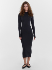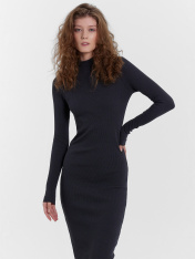 Однотонное платье женское с длинными рукавами, прилегающего силуэта из высококачественного хлопка в рубчик. Вырез круглый, с воротником-стойкой. Рукава длинные, облегающие. Длина модели чуть ниже колена. Отличное базовое платье, которое станет основой вашего стильного образа. Такое платье точно не будет ждать своего часа на полке в шкафу. В осенне-зимний период так хочется надеть что-то максимально комфортное и уютное - эта модель именно такой вариант. Облегающее платье не стесняет движений, очень комфортное в носке. Идеально подойдет для прогулок, встреч с друзьями, свидания и похода в кино. Рекомендуем!