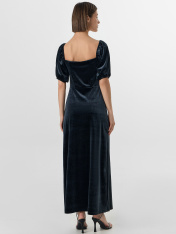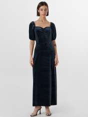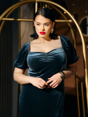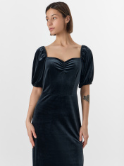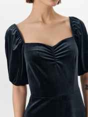 Нарядное платье для особых моментов, где важны и комфорт, и изящество. Полуприлегающий силуэт мягко подчеркивает фигуру, сохраняя свободу движений. Пышные рукава-фонарики с мягкой резинкой создают романтичный объем, а эластичная ткань деликатно облегает контуры тела._x000D_ Горловина с двойной подкладкой аккуратно обрамляет линию шеи, не деформируясь при носке. Центральная сборка на груди образует нежный волнообразный рельеф, придающий платью объем. Отрезная юбка сохраняет четкую линию низа, плавно следуя за движениями.<br>_x000D_ <br>_x000D_ Состав с преобладанием полиэстера обеспечивает легкость и устойчивость к деформации, а добавление спандекса гарантирует идеальную посадку. Все швы выполнены с особой тщательностью для сохранения безупречного вида на протяжении вечера. <br>_x000D_ <br>_x000D_ Это платье станет верным выбором для торжественных событий — от праздничных вечеров до особых случаев, где каждая деталь подчеркивает гармонию элегантности и комфорта._x000D_