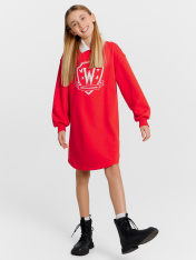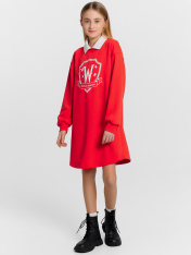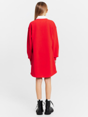 Трикотажное платье для девочек - сочетание комфорта и элегантности. Круглая горловина и втачной классический воротник придают модели изысканный вид, а длинные рукава со спущенной линией плеча и эластичными манжетами обеспечивают свободу движений и дополнительное удобство. Асимметричный низ добавляет оригинальности и современности. Изделие выполнено из футера без подчеса - плотного и износостойкого материала, который хорошо сохраняет форму и устойчив к многократным стиркам. Он обеспечивает отличную воздухопроницаемость, позволяя коже дышать, что особенно важно для детской одежды. Такой материал гипоаллергенен и мягок на ощупь, создавая комфортные ощущения при носке. Это платье станет незаменимой частью гардероба каждой девочки, предлагая ежедневный комфорт и стиль. _x000D_