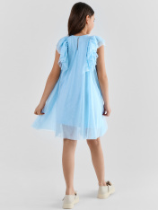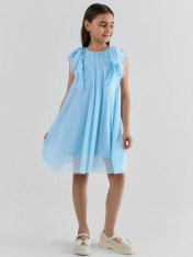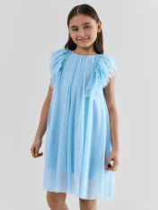 Нарядное платье для девочки создано для самых волшебных праздников. Его силуэт-трапеция с бесшовной линией талии мягко облегает фигуру и не стесняет движений. Круглый вырез горловины и застёжка на пуговице сзади делают наряд удобным для надевания._x000D_ Главным украшением платья стали нежные рюши, которые обрамляют края рукавов. Три слоя лёгких оборок плавно переходят с переда на спинку, создавая воздушный объём и праздничный силуэт. <br>_x000D_ <br>_x000D_ Внутренняя подкладка из мягкого трикотажа с эластаном обеспечивает комфорт на протяжении всего торжества._x000D_ Наружный слой из полиэстера сохраняет безупречную форму платья и не мнётся. <br>_x000D_ <br>_x000D_ Яркий цвет и романтичные рюши делают эту модель идеальным выбором для новогоднего утренника, дня рожденияили выпускного. В этом платье ваша малышка почувствует себя настоящей принцессой из сказки._x000D_ _x000D_ Платье подарит вашей малышке ощущение сказки и настоящего праздника._x000D_