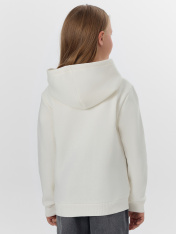 Жакет из трикотажного футера с теплым подчесом. Спущенная линия плеча гарантирует свободу движений. Прямой свободный силуэт, уютный капюшон, длинные рукава на манжетах, удобный карман-кенгуру, центральная застежка на молнию – эта модель наверняка понравится вашей девочке. _x000D_