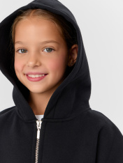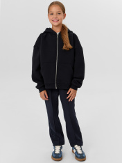 Толстовка для девочек свободного силуэта — это уютная и стильная модель, которая станет любимым элементом гардероба в прохладные дни. Капюшон придает изделию спортивный характер и обеспечивает дополнительную защиту от ветра, а круглая горловина оформлена лаконично и комфортно. Спущенное плечо и длинные рукава с эластичными манжетами из рибаны создают расслабленный, стильный силуэт, не сковывающий движений. Центральная застежка на молнию — практичное решение, которое делает модель удобной в носке, а накладные карманы-кенгуру добавляют функциональности и визуальной симметрии. Отрезной пояс из рибаны аккуратно фиксирует посадку, подчеркивая форму, но не создавая давления. Изделие выполнено из футера с подчесом — теплого, мягкого материала, который приятно ощущается на коже и сохраняет тепло даже в прохладную погоду. Толстовка легко комбинируется с джинсами, легинсами или спортивными брюками, подойдет для школы, прогулок или отдыха дома.